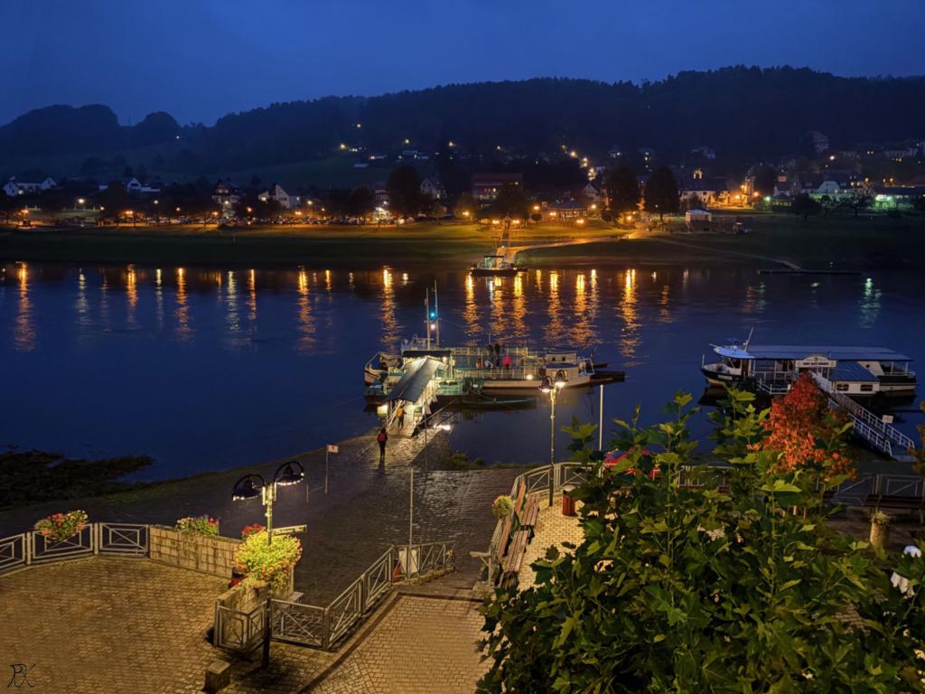 Für die Zimmerbewohner mit Elbblick noch einen solchen auf eben diese bei Nacht.