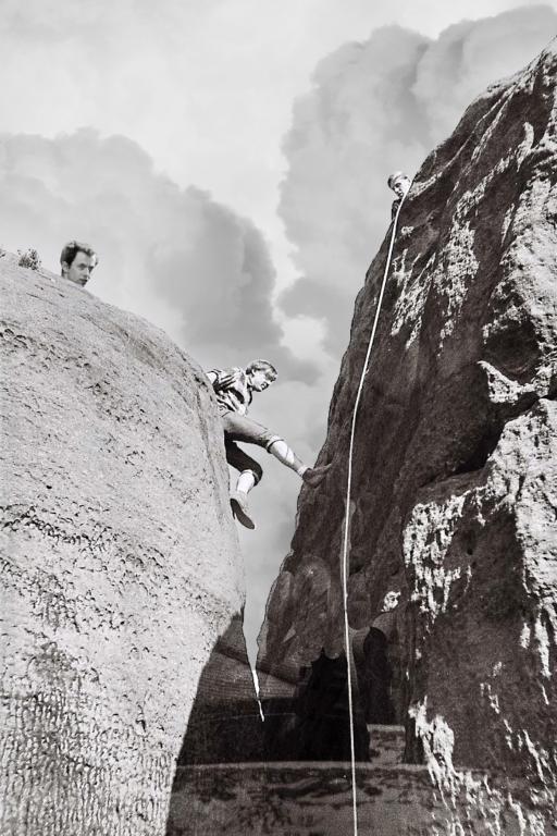 Das fand auch schon 1968 unser Kommilitone Jochen D. (li.), der sich in Hrensko anschickt, einen Gipfel zu erstürmen.