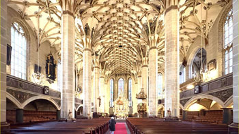 Das Innere der vor 25 Jahren umfassend renovierten spätgotischen Hallenkirche St. Marien ließ uns erstaunen und kurz verweilen.